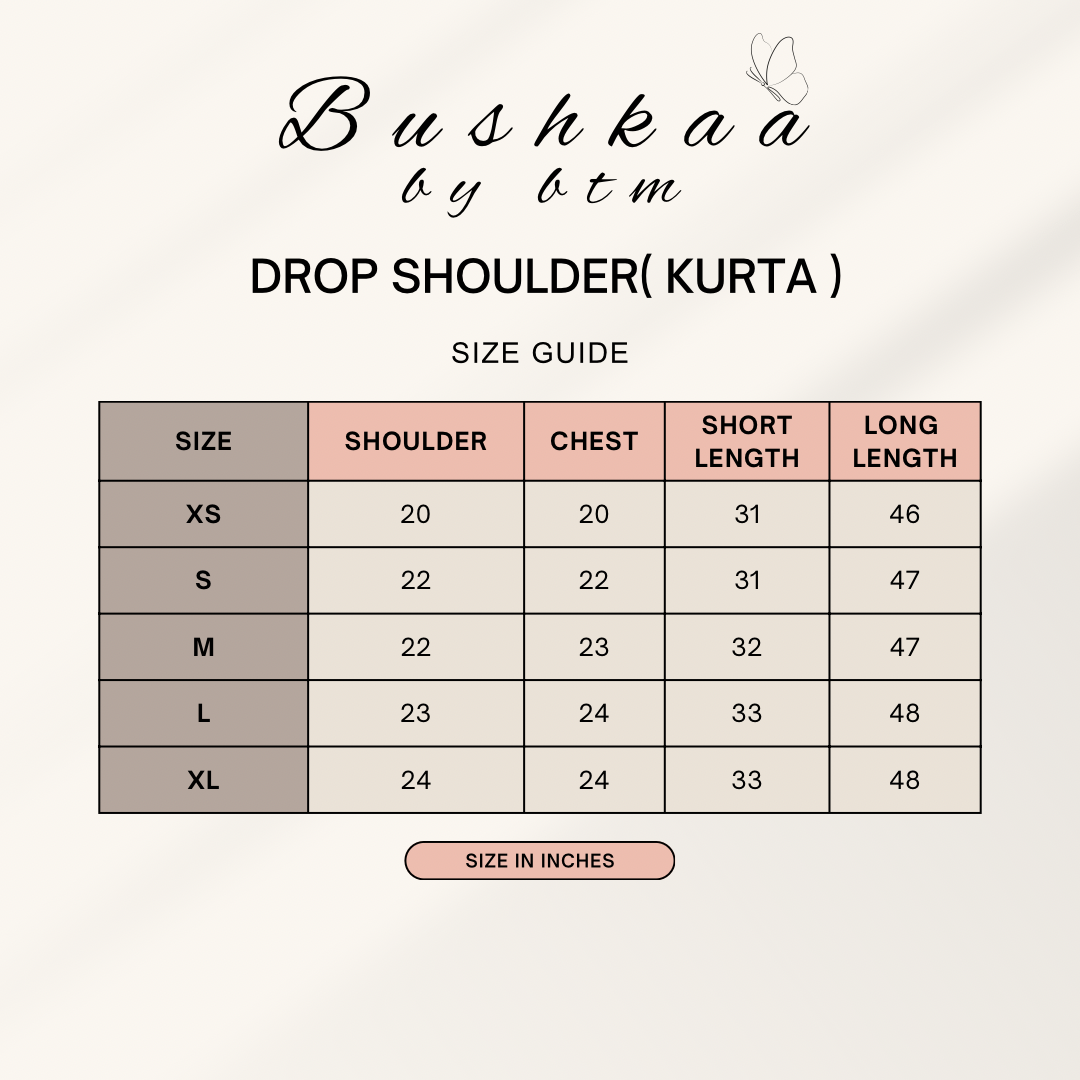 Drop Shoulder Kurta Size Chart Box Cut Kurta Size Chart Skinny Shalwar Size Chart Kaftaan Size Chart Loose Cut Kurta Size Chart Farshi Shalwar Size Chart