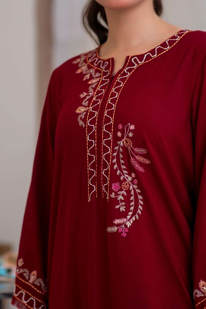 The Raya Kurti is designed to capture sophistication through minimal yet impactful embroidery. The soft linen shirt in deep maroon colour is an all year round breathable shirt, perfect for semi-formal lunches or dinners.
