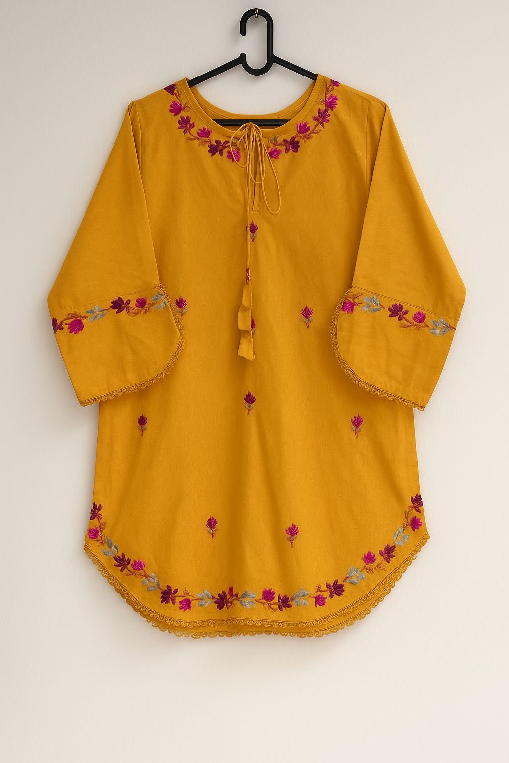 We make every effort to ensure that the colours seen on the images accurately reflect the colour of the actual garment. However, there might be slight variances because of several things like the makeup of cloth dyes, the climate at the time of dying, and variations in display output because of colour settings, lighting, monitor capabilities and digital photography.